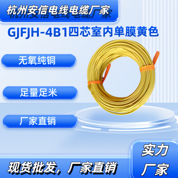 產(chǎn)品名稱:GJFJH-4B1四芯室內(nèi)單膜黃色電線